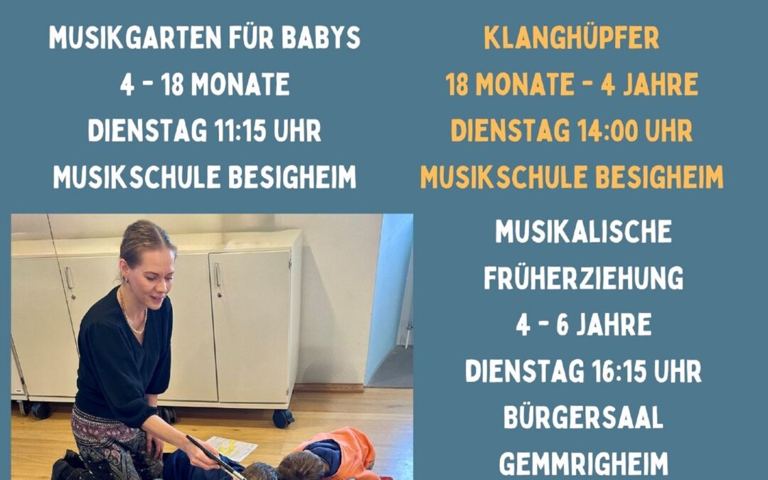 • Musikgarten für Babys: Dienstag, 11:15 Uhr, Musikschule Besigheim